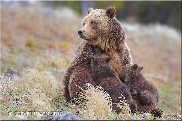 Grizzly sow and cubs. 500mm, tripod, 1/200 @ f5.6, ISO 500